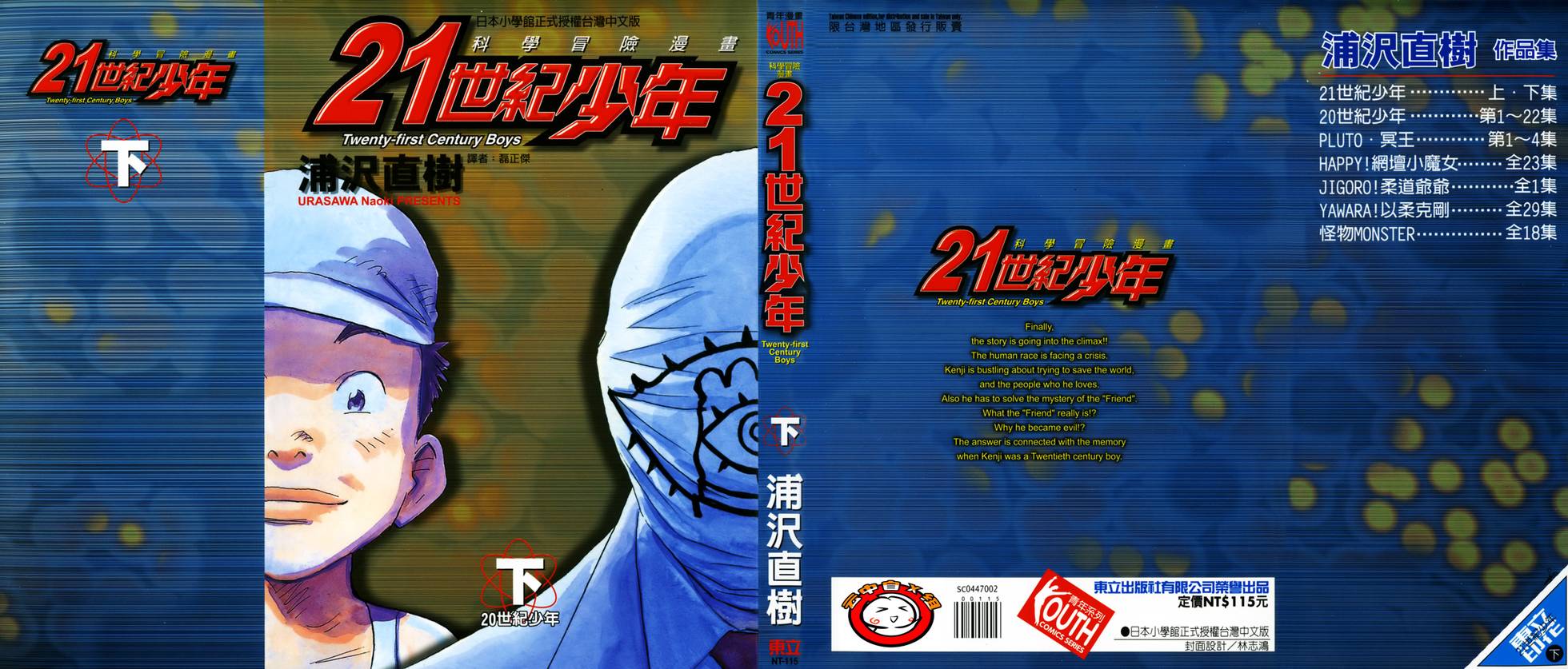 贤知回到了东京,所有事情乍看之下都已经过去,“朋友”的飞碟被击落,恐怖病毒开发出疫苗,东京都民逃过一劫…可是游戏还没有结束,真正的危机潜藏在背后,这个危… 观看全部 贤知回到了东京,所有事情乍看之下都已经过去,“朋友”的飞碟被击落,恐怖病毒开发出疫苗,东京都民逃过一劫…可是游戏还没有结束,真正的危机潜藏在背后,这个危机到底是什么?人类真正的和平何时才能到来?(2008年1月15日上市)(完结篇)「朋友」死后,乍看之下世界终于获得和平,但其实「朋友」的阴谋还在继续进行。贤知得知反阳子炸弹的存在之后,他為了寻找解除炸弹的线索而进入虚拟游乐设施,最后他终于找到,机器人已经啟动,他可以及时通知神乃吗?人类可以逃过这一劫吗?20世纪少年,在此划上句点!(2008年1月30日上市)