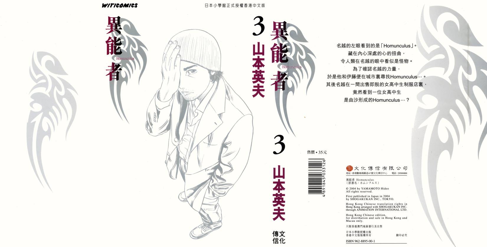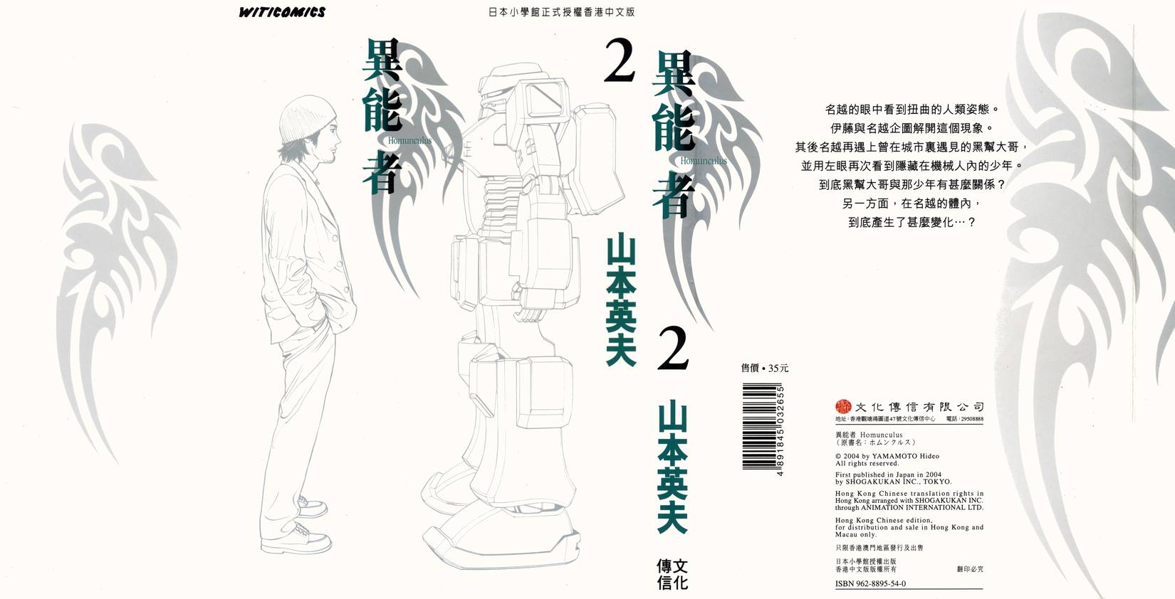 在汽车上生活的名越进,在2星期前移居到新宿车站西口。他有爱说谎的癖好,但他的过去和身分也无人知晓。某一晚,有一位不可思议的男人在他前面出现,并在他的耳… 观看全部 在汽车上生活的名越进,在2星期前移居到新宿车站西口。他有爱说谎的癖好,但他的过去和身分也无人知晓。某一晚,有一位不可思议的男人在他前面出现,并在他的耳边说:「有没有兴趣以70万日圆作為酬劳,接受一个人体实验?」,而那个实验的名称就是;Trepanation〈头盖骨钻孔手术〉!所谓的异形是人心歪曲而化成形体的东西!?做完了人体实验,接二连三的冲击袭向名越。在黑帮老大恢复成正常人后,伊藤将查到的资料告诉名越,说他用左眼所看到的异变的真面目是Homunculus!默默接受此种说法的名越,这时候却意外透过遮蔽的左眼,发现自己的右手竟化成了机械人的手臂……!!重点是人心深层的沉沦与扭曲,变成了各种怪物……所看到的就是「Homunculus」。在得知Homunculus的大概,也就是「内心的扭曲」之后,对于伊藤所锁定的女孩,名越透过左眼,目睹了「砂」vs.「水」……怪物们(Homunculus)的彼此钩心斗角,连名越也被捲入……!?将砂之怪物‧编号1775的女孩送回家后,名越并没有立即驱车离去。倒是发现那女孩所遗留来的手机,好奇心驱使他研究了起来。就在此时,女孩竟从二楼一跃而下,看来似乎是逃家!?想要探究这如同记号般的砂怪,名越决定走入「迷宫」,拉她上车……越来越诡异迷情的发展,名越与1775将……!?,P>名越与「砂」纠缠一夜后,一切又有了新的变化吗?,P>决意帮砂之高中女生实现「梦想」,名越强行侵入「砂」之内。激烈的初体验,让「砂」开始反击;不愿成為大人的符号涌现出来,连名越过去的女人们都联结成形冲击他……然而到最后,他仍是将「软体安装完毕」!这不可思议的一夜触发到名越内心深处,让他回到了「那边」……!?原本在外商银行从事精算师的工作,可说是精英中的精英,然而名越最后却成了流浪汉,到底是為了什么呢?故事的进展正朝名越的核心迫近而来!眾所期待的第7集,终于登场!!用一隻眼睛到处凝视著每个人的名越…………他在伊藤的身上所看见的自己是……!眾所期待的第8集,即将上市!!名越一体两面的名越和伊藤这两个人……终于出现了交集……!令人难以预测剧情走向、拍案绝伦的第9集,即将发售!!一体两面的名越与伊藤这两人终于出现了交集──名越带著男扮女装的伊藤来到饭店的餐厅,两人再次正面交锋,而伊藤仍取得主导权,推翻名越在他身上所看到的Homunculus;殊不知这些现象已暗示他才是异变者,他自身根本也没有真实的存在感!至于被逼问到败退的名越则显得垂头丧气,顿时感觉不到自己存在的分量。在还没变脸之前的他真正的模样究竟是……!?名越终于想起还有一张能唤醒他过去的照片──被伊藤彻底击垮的名越像行尸走肉般,在大街上漫无目的地行走著。在街友阿健的激励下,他决定不再垂头丧气,应该要挺起胸膛、仰望许久不见的天空。就在此时,名越的嗅觉触动了记忆中的钥匙,究竟那张关键的照片能否一举揭开他的过去?!而名越跟伊藤之间的关係又会产生什么变化呢?令人惊心动魄、冲击性的「自我颅骨穿孔手术」──几乎失去能看见「Homunculus」能力的名越非常焦躁,因而向伊藤兴师问罪。在与伊藤的对谈中,他意外发现了还是有可能可以恢复看到「Homunculus」的机会,于是……一个下雨的夜晚、一座公园的公厕裡、一个全身赤裸的男子,开始了他与死神的挑战。名越究竟有什么计划?!他是否能取回他的能力呢?那名突然现身的「善变」女子,握有名越真实「自己」的关键吗?!做完「自我颅骨穿孔手术」的名越,终于又恢复了Homunculus的能力。就在他持续探索整形前的自我為何之际,一位自称认识他的女性出现在他面前。透过Homunculus,那女人的面貌多变且眼熟,名越怀疑她就是之前看得见他「自己」的人!他和她之间究竟发生过什么事呢?名越「丑陋」的过去逐渐浮出檯面,他拥有的Homunculus能力竟是幻觉?!跟谜样的女人奈奈子在车上对话的名越,眼前变幻多端的脸孔全是与他相关的人事物!唯有一人不存在他的记忆或经验之中,那是个长相奇丑无比的男子……这跟奈奈子是他前女友的事有所连结吗?而在Homunculus底下,大厨那如镜面的鸡蛋外壳,又会将名越带往怎样的异形深处呢?在真实的世界裡并不需要「虚假」!!名越眼前所见的是『天堂』抑或『地狱』!?终于跟奈奈子对质的名越,确认她就是前女友;也因為她的关係,才能让名越从低著头的世界,慢慢地抬起来面向前方,开始与人面对面。然而后来名越却选择了逃避,抛弃原来的一切!只不过逃避的结果,还是继续在找寻逃避的路,直到拥有了Homunculus,这才让他找到归处──那就是会看见别人的「真心」……!?名越的未来究竟会何去何从?冲击人心的最终卷!
