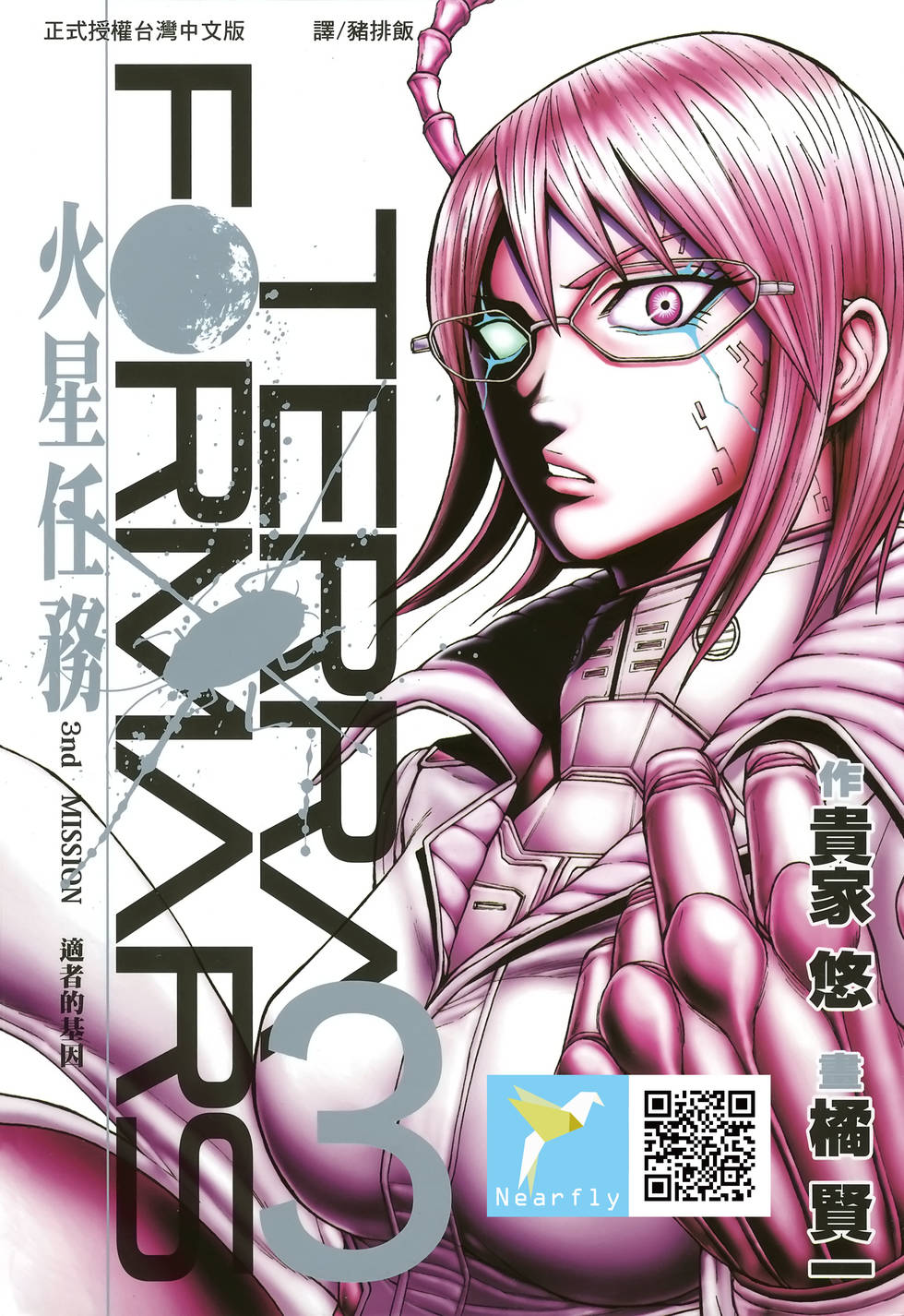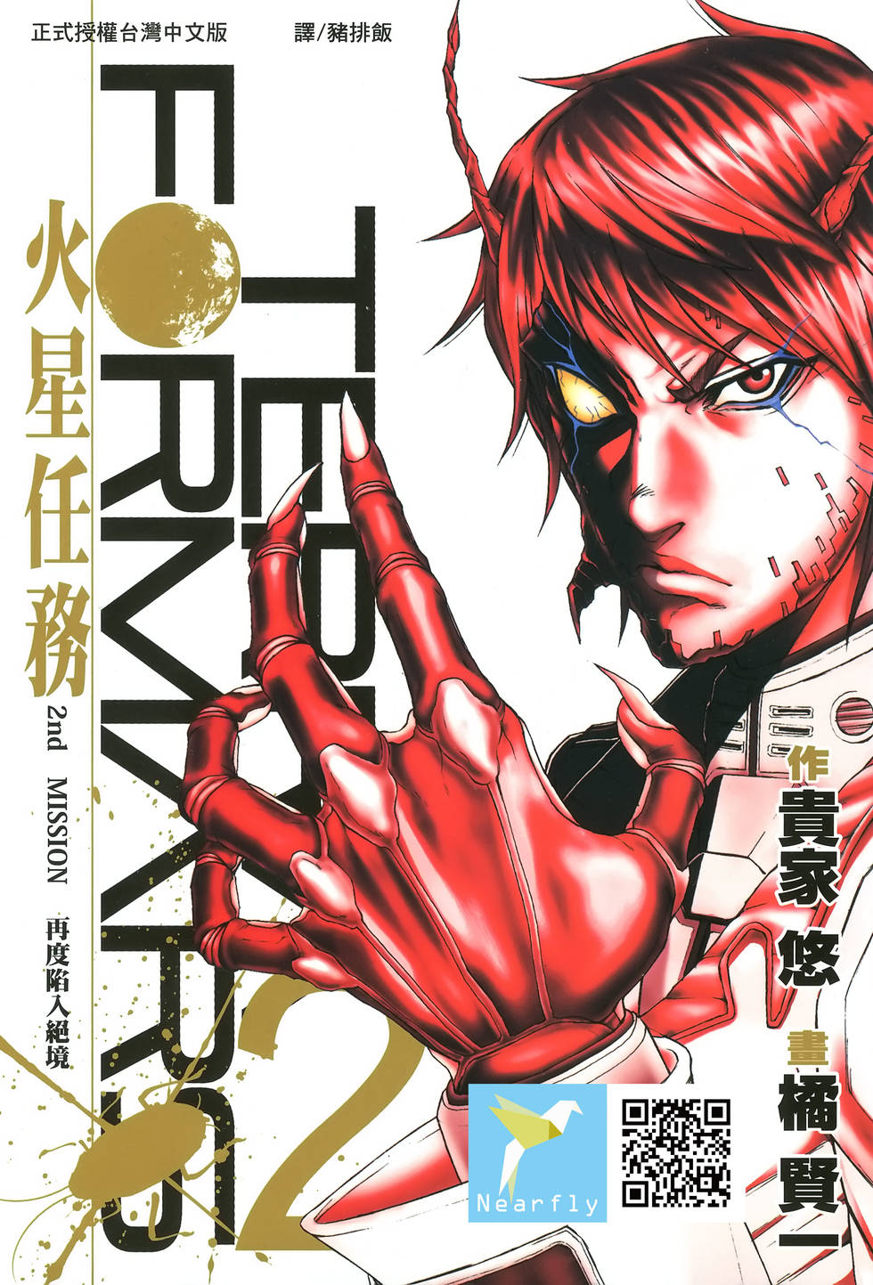 《火星异种》(テラフォーマーズ、TERRA FORMARS)為贵家悠原作、橘贤一作画的日本漫画,是在著名的漫画杂誌《週刊YOUNG JUMP》上连载的一部科幻热血类漫画作品!2… 观看全部 《火星异种》(テラフォーマーズ、TERRA FORMARS)為贵家悠原作、橘贤一作画的日本漫画,是在著名的漫画杂誌《週刊YOUNG JUMP》上连载的一部科幻热血类漫画作品!2013年「这本漫画真厉害」男榜第一位!!新颖的题材是本作的看点。.目前火热连载中。.「在遭遇到前所未见的事物之际,人类就无法继续当个人类了。」西元2599年———-人类在火星执行了地球化计画,火星地表因而覆盖一层青苔生物。此外,15名精挑细选的年轻人肩负世人期望,搭乘载人太空船「巴格兹2号」前往火星执行某项重要任务。那裡却有一群历经超乎想像的进化的未知生物等著他们……!?在距离『巴格斯2号』任务20年后的泰国——為了帮助与病魔奋战的青梅竹马,膝丸灯挑战奖金丰厚的死亡格斗!另一方面,会场裡头还有盯上膝丸灯的双人组,这两人打算在赛后拉拢膝丸灯加入某项火星计画吗!?人类与蟑螂之间即将再度掀起激战的序幕!!「在遭遇到前所未见的事物之际,人类就无法继续当个人类了。」『阿聂克斯1号』船内突然出现了火星进化种。受到袭击的船员们分成六路迫降在火星。灯与蜜雪儿等人发动了需由药物来引发的全新特殊能力,准备与进化后的恶魔展开对峙!在遭遇到前所未见的事物之际,人类就无法继续当个人类了。為了保护同伴,灯与蜜雪儿使用能力挑战拥有特殊外型的火星进化种!结果却因為敌人的惊奇能力而陷入意想不到的苦战....?另一方面,四散在火星各地的各班消息逐渐明朗化....!?人类与恶魔的战斗越来越白热化了!!在遭遇到前所未见的事物之际,人类就无法继续当个人类了。德国‧南美第5班遭到无数火星进化种的猛攻。班长阿道夫虽奋战不懈,但战况的恶化却越来越令人绝望…!!另外,小町小吉所率领的日美联合第1班遭遇到拥有「那个」能力的敌人…。刻画男儿们战斗英姿与热血人生的白热化第5集!在地球上,各国首脑齐聚一堂,為了火星计画所带来的利益而展开白热化的激烈攻防。在火星上,狙击灯与蜜雪儿的那群不速之客终于现身…!「对立」逐渐浮上台面,「背叛」终于真相大白。故事急转直下,超越人类对决蟑螂的构图!「在遭遇到前所未见的事物之际,人类就无法继续当个人类了。」第3班对第4班的战斗仍在持续中,暂时沉默的火星进化种显现出惊人的变化,让这场战争形成三方大战!于是第4班决定使用禁忌的最终武器…!為完成自身使命而活的战士,他们的觉悟让火星大地变得更加火热!!「在遭遇到前所未见的事物之际,人类就无法继续当个人类了。」遭到第4班追捕的灯与蜜雪儿,遇到拥有子弹蚁能力的火星进化种。面对夺走亡父能力的可恨对手,蜜雪儿赌上性命挺身应战!在灯的背后,出现了全新强敌的身影…?揹负人类希望的两位王牌,考验他们真正价值的这一战,现在就要开始了!灯等人沦為阶下囚,载著他们的逃生艇遭到大批火星进化种袭击!第4班的爆為了避开危机而选择了最危险的行动…!另一方面,躲在地下准备骇入讯号塔的马可斯一行人也遇到了出乎意料的状况…!?在绝望一波波蜂拥而至的绝境下,战士们的爱与羁绊大放光芒的第10集!!