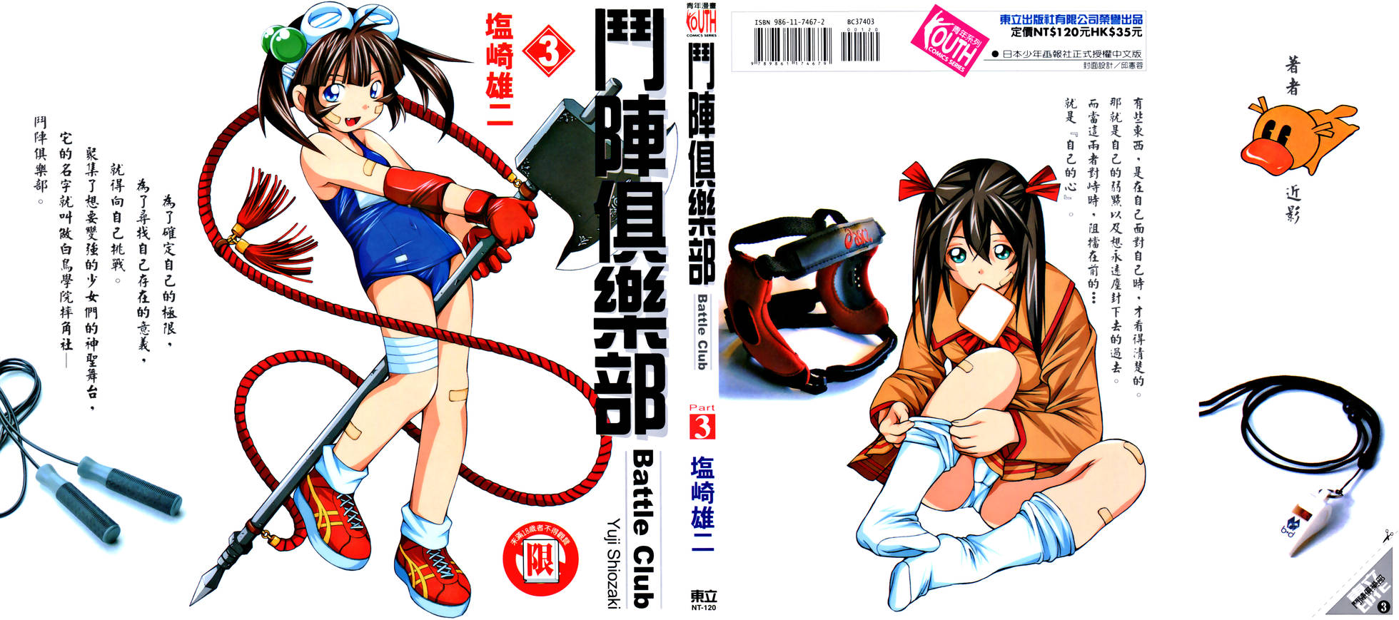 继大快人心的《一骑当千》之后,塩崎雄二老师最新作品终于诞生了!精緻的画风、性感的主角、加上华丽感动的动作设计,一部㳽漫著微妙性感动作喜剧现在正是登台。… 观看全部 继大快人心的《一骑当千》之后,塩崎雄二老师最新作品终于诞生了!精緻的画风、性感的主角、加上华丽感动的动作设计,一部㳽漫著微妙性感动作喜剧现在正是登台。為了满足漫迷收藏的慾望,以及足以匹配塩崎雄二老师精緻画面设计,本书特别推出豪华典藏版。不论你是塩崎雄二老师的新旧书迷,《斗阵俱乐部》都将是让您惊艳不已、拜读再三的绝佳创作!2005年4月已经上市。她的飞踢连天都可以贯穿,被她一摔,便会华丽地飞向宇宙……。被她一勒,便会前往地狱,她的打击能让火焰也变成碎片……。聚集了想要变强的少女们的神圣舞台,它的名字就叫做白鸟学院摔角社斗阵俱乐部!2005年4月已经上市。玉子一行人,為了取得兵书『天之丛云』,而准备登上灵峰伊吹山,但是為了抵达山顶,则必须打败守护书卷的四大天王,「广目」、「多门」、「持国」、「增长」,究竟玉子一行人是否能顺利取得『天之丛云』呢?2005年9月已经上市。就算失败受伤,就算被打倒流泪,还是不轻言放弃的心,就叫做『白鸟魂』。就算败北,也不感到羞耻,持续不懈地往自己的目标前进!那份气势与精神,将让那个人永远不败。聚集了想要变强的少女们的神圣舞台,它的名字就叫做白鸟学院摔角社,斗阵俱乐部。(2006年5月24日)跟破坏约定的朋友对峙时,沉睡在我心裡的鬼魂,便会跃地而起,吞噬敌人,这就叫做鬼爱!(2007年1月16日上市)為了让向田明白气势与爱的道理,东大门故意安排向田,让她跟玉子相识并对战,而在打败玉子后,东大门跟向田更经历了一场激战,之后便离开白鸟学院就此下落不明…。此外泷社长更道出了他為何会做女装打扮的原因,究竟他所言是真是假?(2008年1月10日上市)